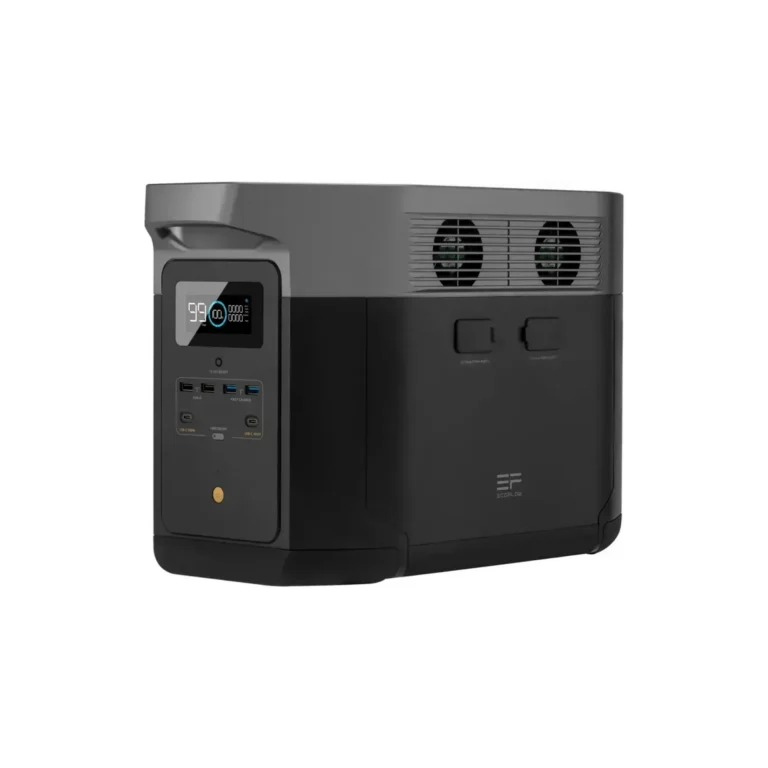 EcoFlow DELTA Max 2000 — потужна портативна зарядна станція з акумулятором 2016Wh та номінальною потужністю 2400W. Ідеально підходить для резервного живлення будинку, роботи з електроінструментом та автономного використання. Підтримує швидку зарядку, підключення сонячних панелей та розширення ємності додатковими батареями.