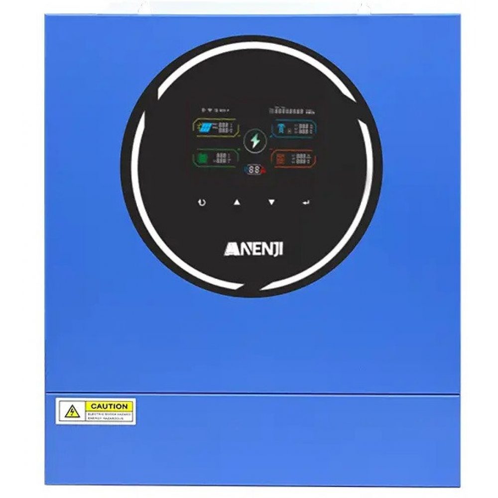 Гібридний інвертор Anenji поєднує в одному корпусі інвертор, потужний MPPT-контролер та зарядний модуль. Пристрій працює як в on-grid, так і в off-grid режимах, підтримує живлення від сонячних панелей, акумуляторів або електромережі, а також здатний працювати без підключеного АКБ. Інвертор формує чисту синусоїду, що забезпечує повну сумісність із чутливою електронікою — комп’ютерами, серверами, холодильниками, насосами, кліматичними та телекомунікаційними системами.