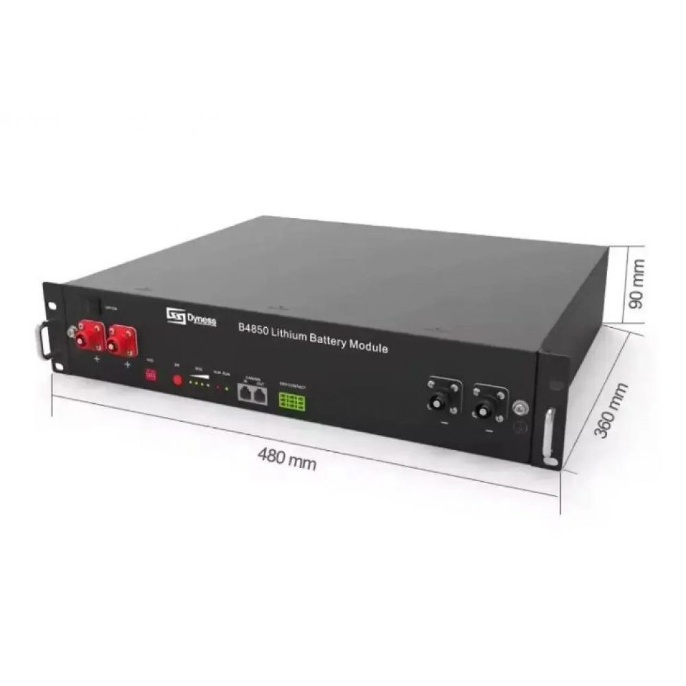 Акумулятор Dyness B4850 з ємністю 2,4 кВт·год побудований на безпечній літій-залізо-фосфатній технології (LiFePO4). Він забезпечує стабільну віддачу енергії, тривалий ресурс роботи та високий рівень безпеки завдяки вбудованій системі BMS.
