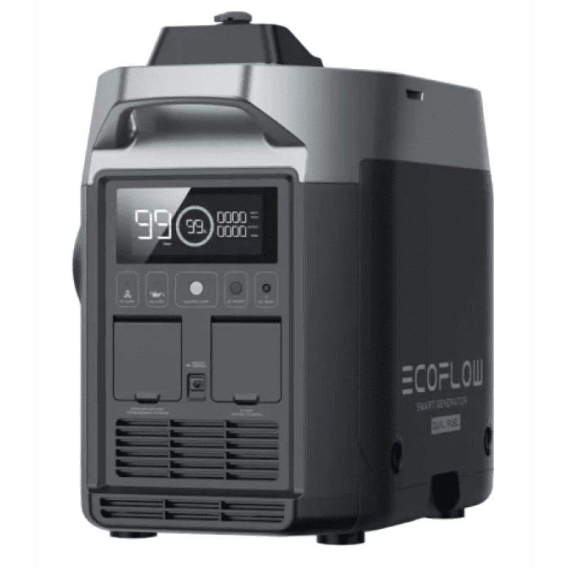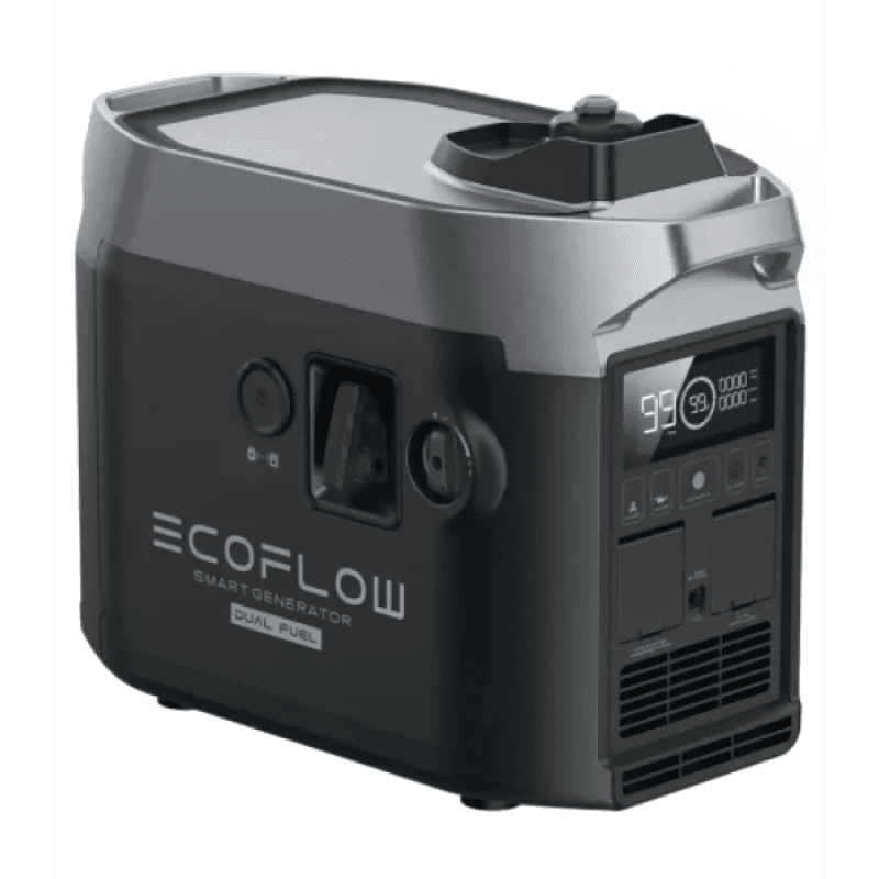 Smart Generator (Dual Fuel) працює не лише на 4л бензині, генеруючи 5.4 кВт/год за потужності 1800 Вт, але навіть до 20 кВт/год на зрідженому нафтовому газі. Зріджений газ є новим джерелом енергії у надзвичайних ситуаціях, коли сонячна енергія недоступна. Час його заряджання для DELTA Max становить 1.5 години, для DELTA Pro – 2 години.