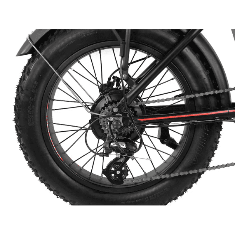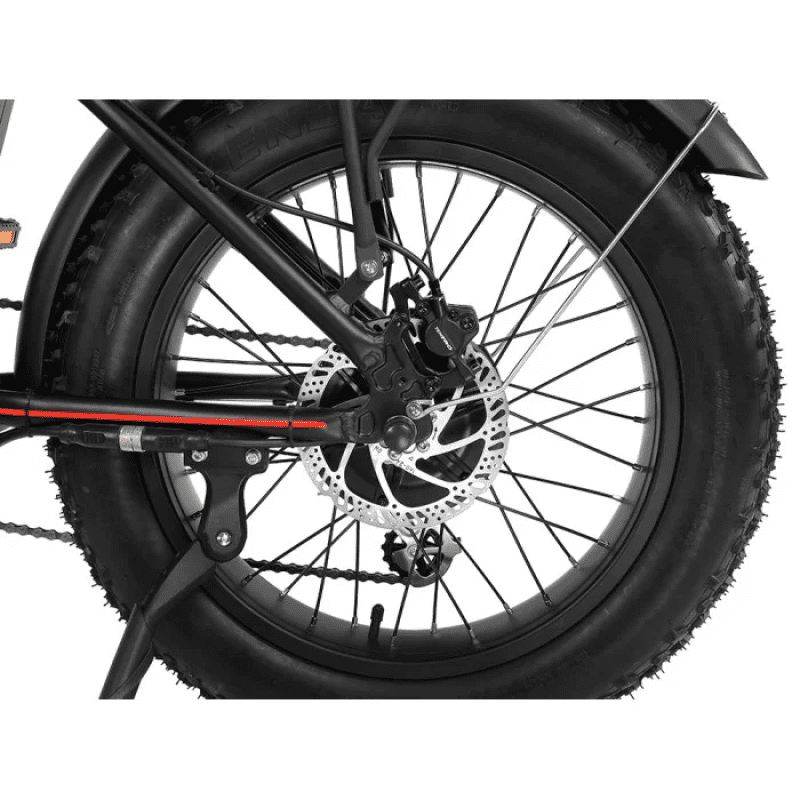 Широкі позашляхові шини 20″ Fat Tire забезпечують відмінну стабільність, комфорт та високу прохідність на різних типах покриття — асфальті, ґрунті, піску або снігу.