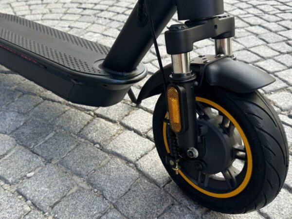 Цей електросамокат оснащений потужним акумулятором ємністю 7,5 А-год, що забезпечує пробіг до 25 км на одному заряді. Незалежно від того, чи ви виконуєте доручення, чи досліджуєте околиці, ви можете насолоджуватися тривалою поїздкою, не турбуючись про термін служби акумулятора. Акумулятор скутера швидко заряджається, що дозволяє мінімізувати час простою між поїздками.