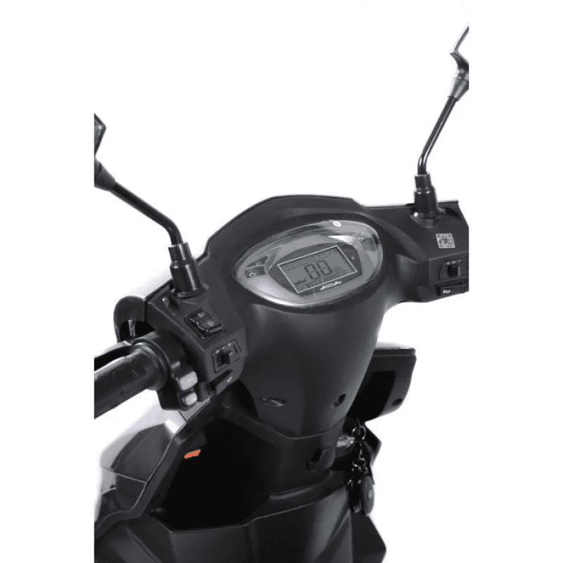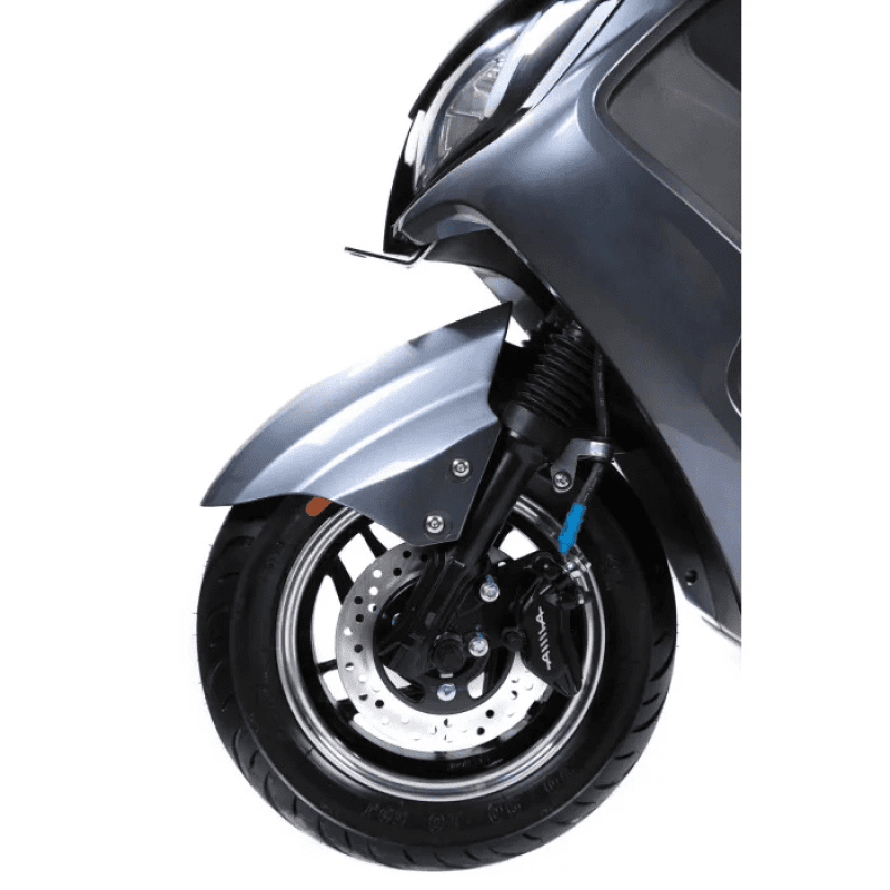 Електроскутер AIMA BIG BULL – сучасний вид екологічного транспорту, що не вимагає заправки бензином, оскільки має акумулятор ємністю 1200 Втч, що забезпечує до 65 км пробігу. Заряджається від електромережі. Великі 10-дюймові колеса та амортизаційна підвіска робить їзду плавною та безпечною на дорозі. Скутер BIG BULL має двомісне сидіння та досить місткий багажник під сидінням. Електроскутер має ефективну сигналізацію та систему блокування коліс. Тому його впевнено можна залишити без нагляду. Яскрава протитуманна фара дозволяє безпечно пересуватися дорогою у будь-який час дня. Максимальна вага навантаження – 180 кг. Вага транспорту 120 кг.