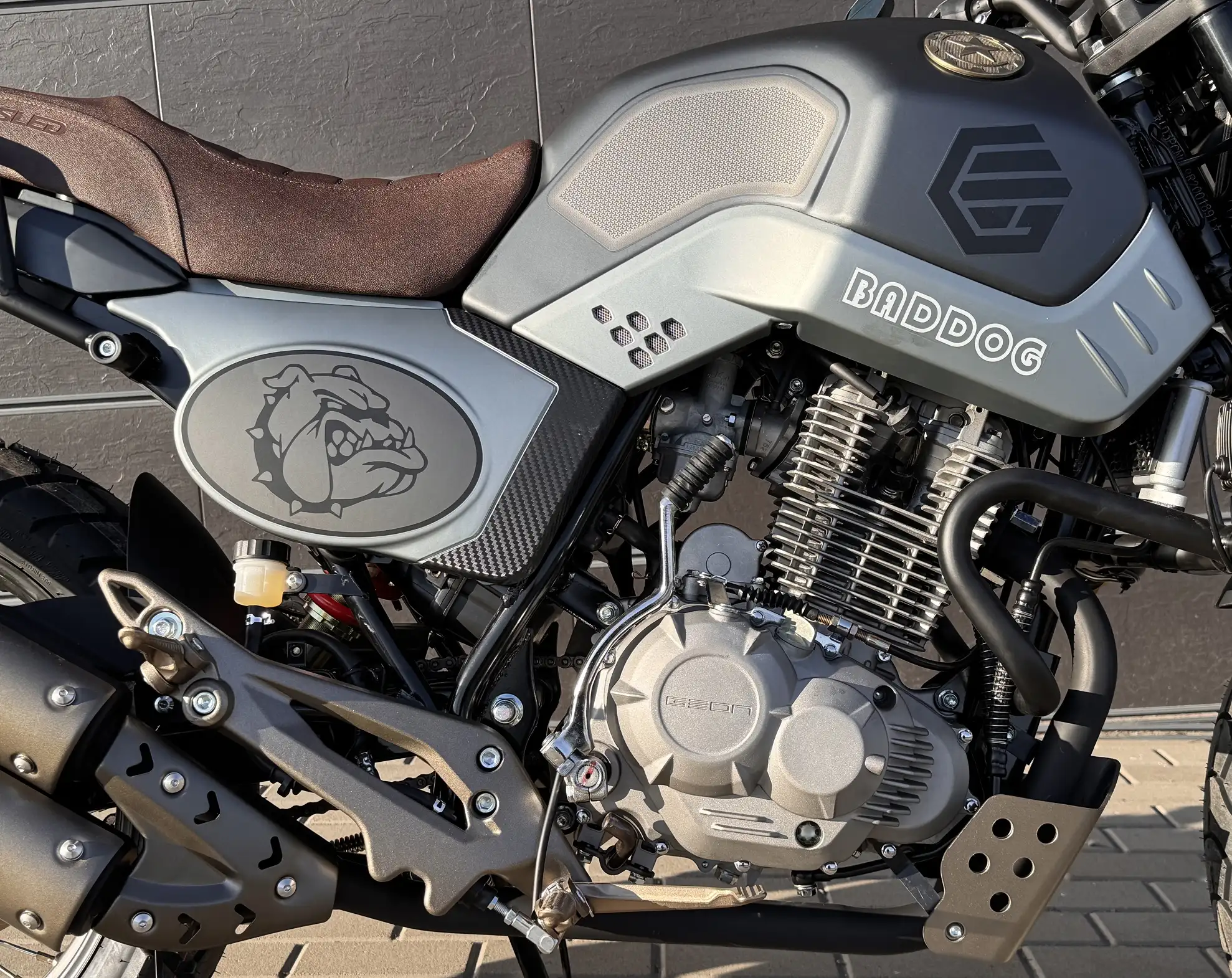 GEON BadDog 250 — це мотоцикл з характером, створений для тих, хто любить швидкість, динаміку та свободу. Потужний одноциліндровий 4-тактний двигун об’ємом 248 см³ видає 22 кінські сили, забезпечуючи вражаючу динаміку розгону та впевнену поведінку на будь-якому покритті. Завдяки системі охолодження повітряно-масляного типу та надійній шестиступеневій коробці передач цей байк поєднує в собі витривалість і маневровість.