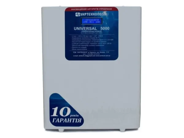 Надійний однофазний релейний стабілізатор українського виробництва для захисту електромережі будинку або квартири від перепадів напруги. Підходить для більшості побутових приладів та електрообладнання.