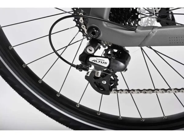 Велосипед оснащений надійною трансмісією, амортизаційною вилкою та універсальними колесами, що забезпечують комфортну їзду на різних типах доріг.